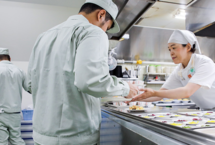 弊社にフード・サービスコスモ(以下:コスモ)さんを導入して30年弱になります。当時の食堂はお弁当支給の会社だったのですが、昼を過ぎると冷めることが多く従業員から「温かいご飯を食べたい」という声があがったようです。その時に、まかないで温かいご飯を提供してくれるコスモさんを紹介していただきました。弊社は24時間稼働しており、夜の現場もあります。夜間もまかないで対応してくれる給食会社は少ないようなので、非常にありがたいです。昔は、夜ご飯は弁当屋へ買いに行ってましたが、買った時は温かいのですが戻る頃には冷めていて(笑)。今は夜でも出来たてが食べられるのでうれしいですね。